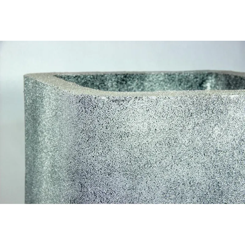 Neutralny srebrnoszary kolor wprowadza do aranżacji poczucie przestrzeni i światła, dlatego model ten świetnie sprawdzi się w salonach, biurach, ogrodach zimowych oraz na zadaszonych tarasach. Donica została wykonana z lekkiego, ale odpornego materiału XPS i pokryta kamiennym tynkiem. Jej powierzchnia zabezpieczona jest żywicą UV oraz hydrofobową powłoką, co zapewnia trwałość przez cały rok.