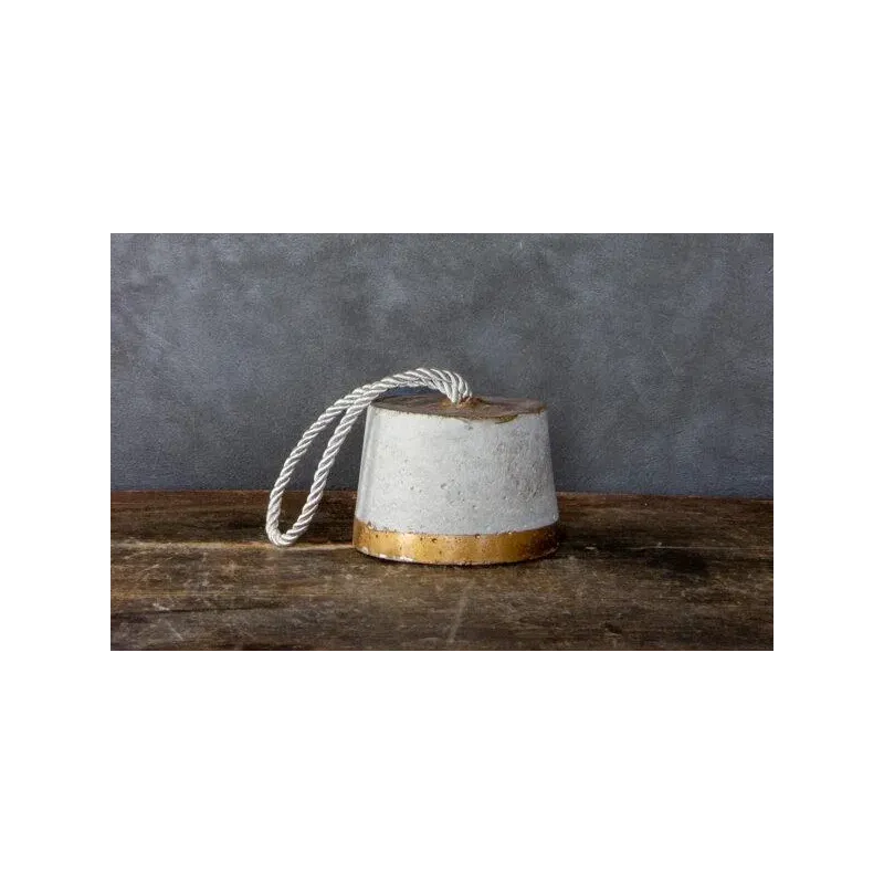 Kontrastowa forma i wykończenie – Jasny beton połączony z ciepłą miedzianą podstawą daje elegancki, nowoczesny efekt. Ten subtelny kontrast sprawia, że stoper przyciąga wzrok i doskonale komponuje się z jasnymi wnętrzami.