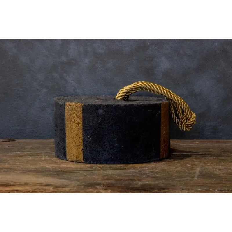 Materiał: Beton portlandzki Rozmiar: 15,5 × 7,5 cm Waga: 2.6 kg Kolor: Czarny + naturalny beton Uchwyt: Lina jutowa Zastosowanie: Wewnątrz i na taras Styl: Japandi, loft, modern
