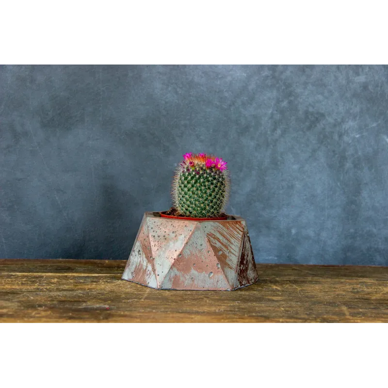 Doniczka osłonka betonowa szaro-miedziana sześciokątna – Dodo