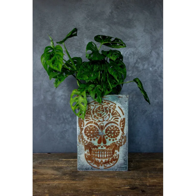 Osłonka na doniczkę z czaszką 21 x 21 x 30 cm - ręcznie robiona